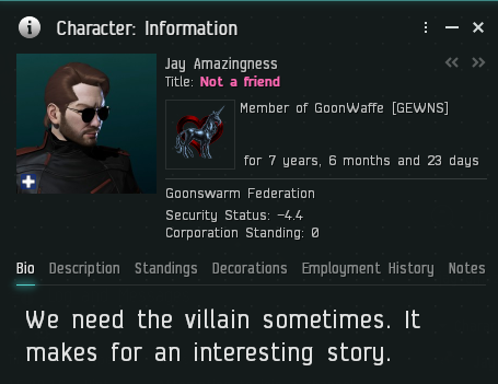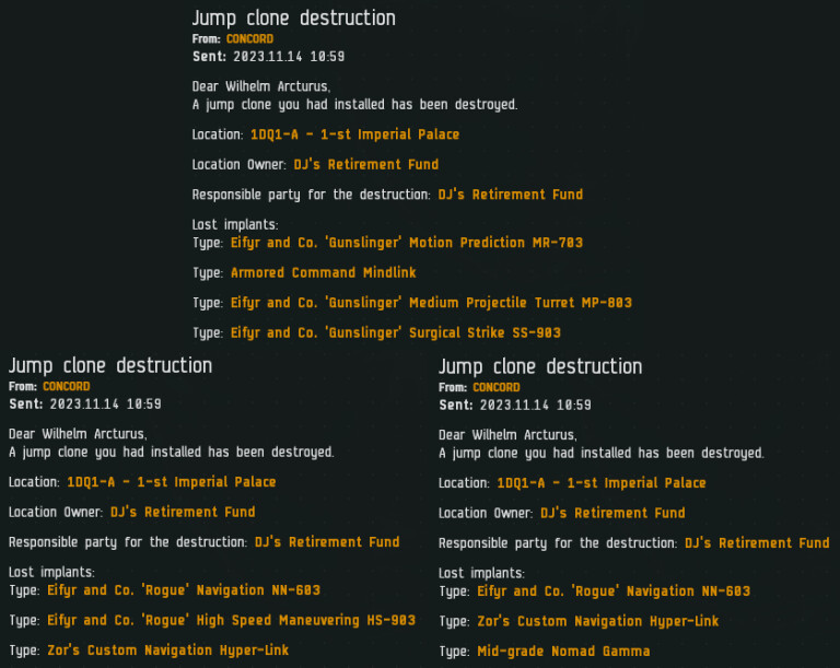 “我怎么知道会发生这种事?我们是十年的好朋友,我们经常聊天,我们今天还在聊天。我们讨论很多EVE之外的事情。他最近回到EVE我给了他总监权限因为我信任他。我可以说他是我在EVE最信任的人之一。我不明白为什么会发生这种事。有一点点的可能他是被盗号了,但更大更可能就是他决定这么做。我希望他没事,如果他想在EVE留下他的痕迹,那我猜就是这个了。我非常受伤,没有什么能做的了。作为联盟这不会对我们有什么影响,但我会对此有很长时间的想法”
