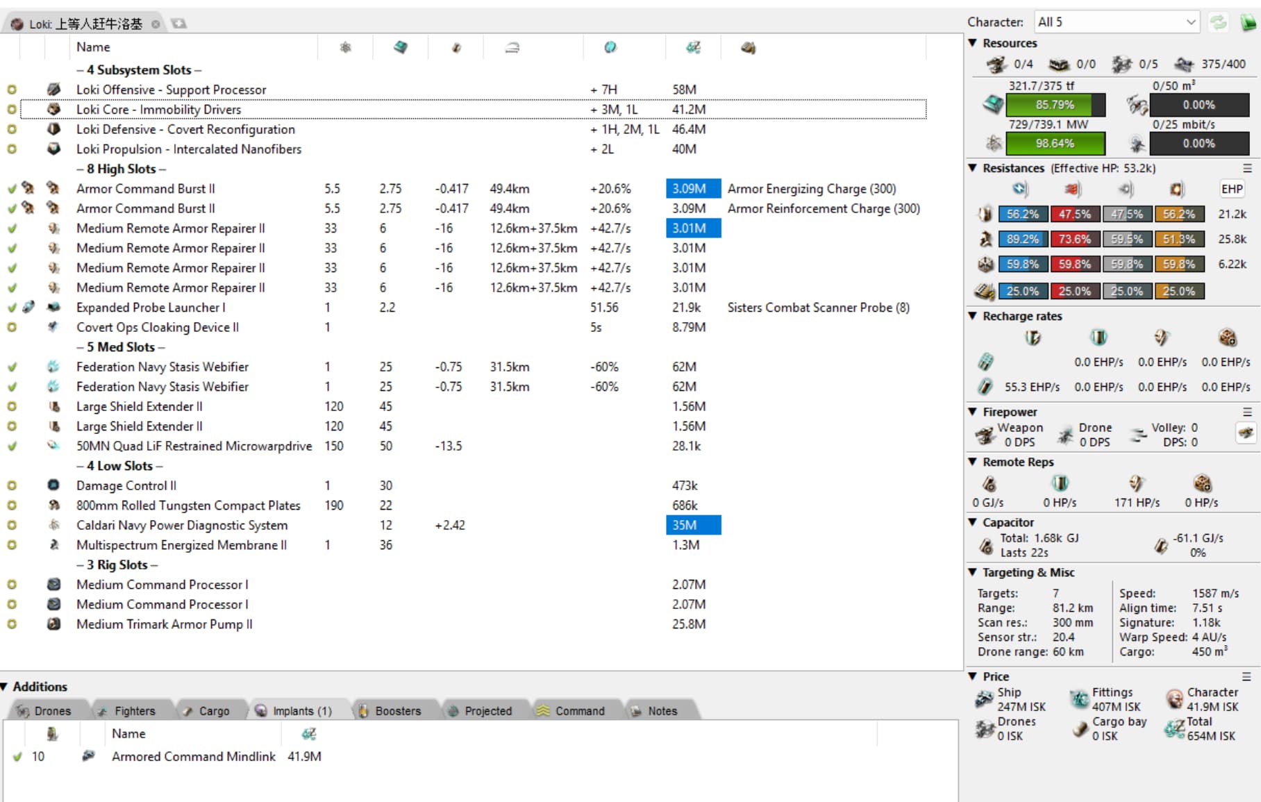 这是一个范例的洛基配置,能加成能网,能当扫描号还能当后勤使,便宜好用: